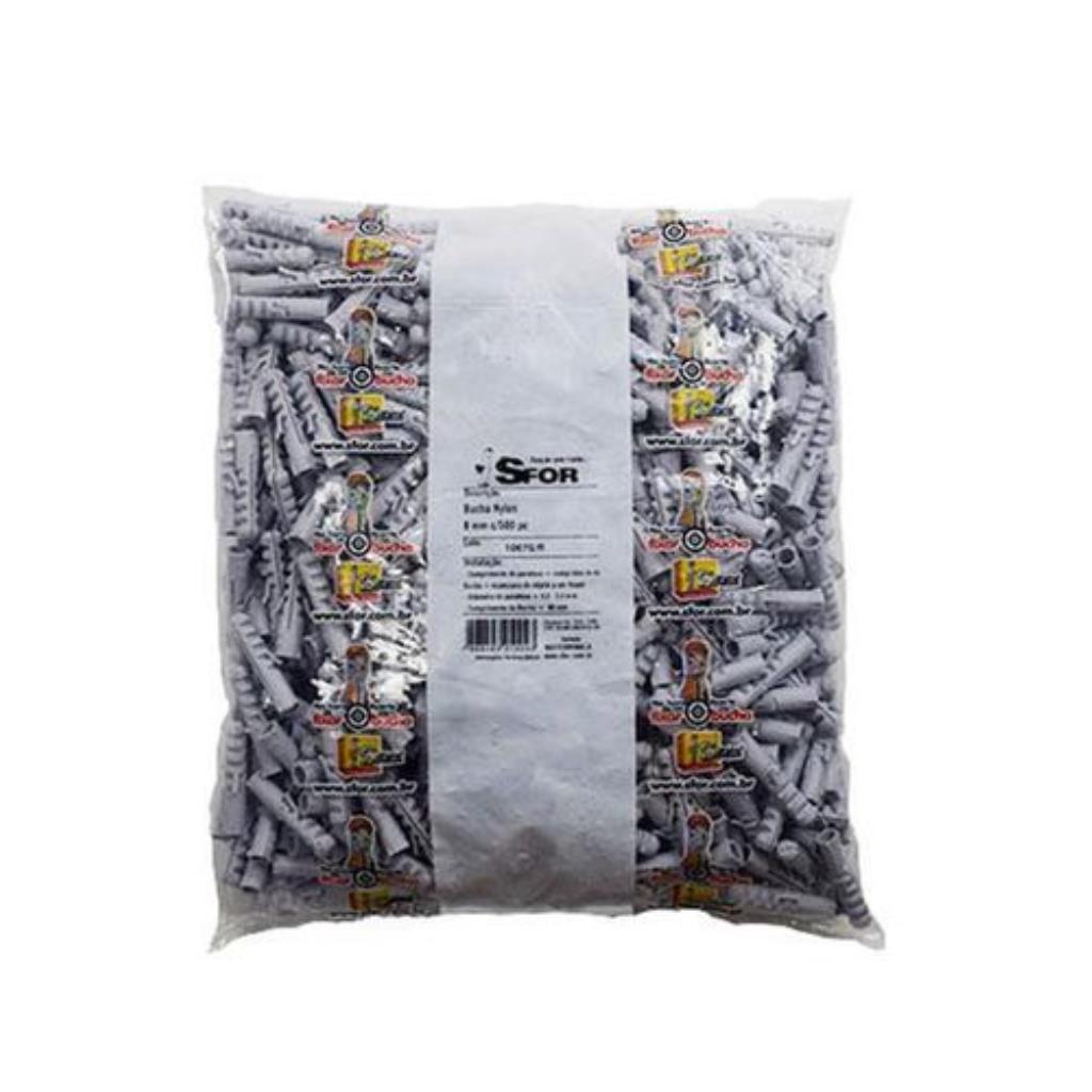 Bucha de fixação tradicional para bases maciças. Produzida com poliamida 6 (nylon) de alta qualidade. Pode-se utilizar parafuso tipo madeira, auto-atarraxante ou sextavado, entre os diâmetros 4,5 a 6,1 mm, com comprimento de 40 mm mais a espessura do objeto a ser fixado.